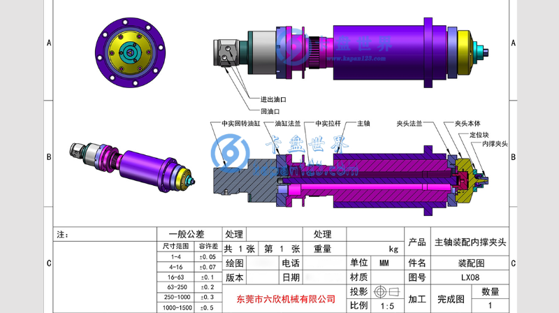 内涨夹头搭配的是中实型的油缸和中实拉杆,这里要注意定位块和涨套的适配,可以根据夹持需求定制。