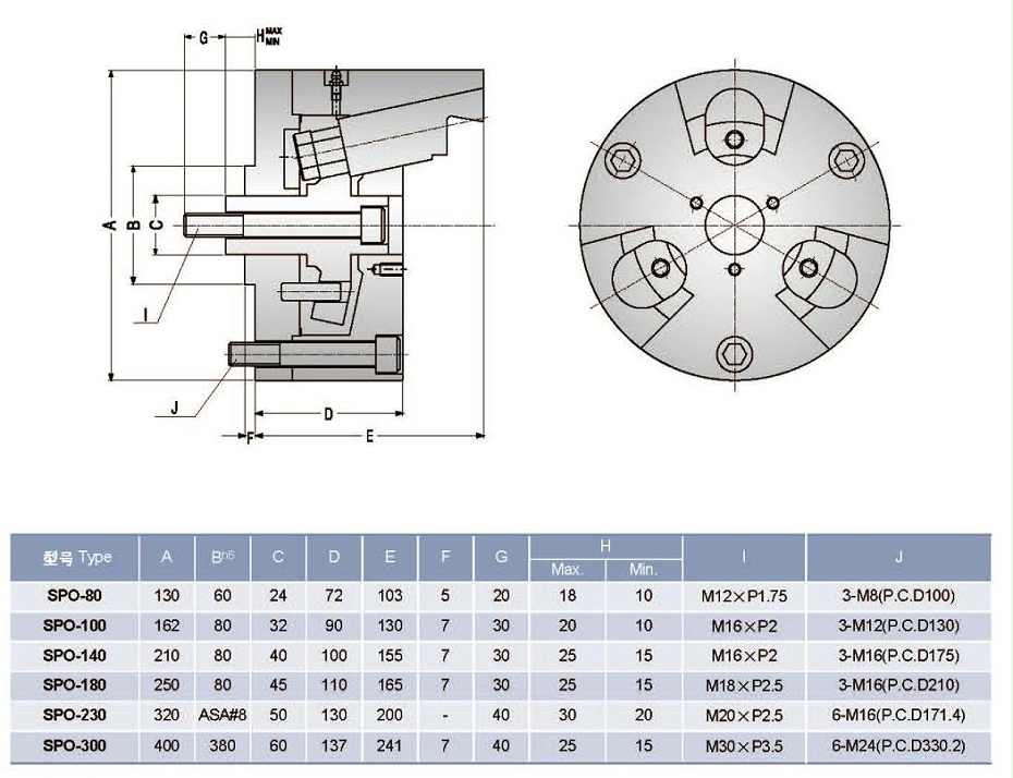 乐彩汇 韩国绅纲外径型卡盘SPO系列是一款外径卡盘,适合已加工的部分为基准加工其他部分的2次加工。