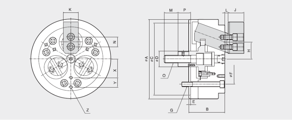 | 规格 | 最大拉杆拉力(kgf) | 最大拉杆拉力(kgf) | 卡爪行程(mm) | 柱塞行程(mm) | 夹持范围(standard) | 夹持范围(Top Jaw) | 最大转速(r.p.m) | 重量[kg] | 转动惯性[kgf.m²] | |